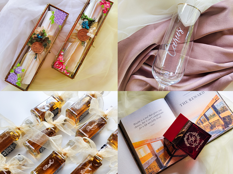 Having started in December 2019, we are a calligraphy & lettering design boutique based in Pune. From providing bespoke calligraphy and engraving services to hand-lettering various surfaces, we transform ordinary items into cherished keepsakes. Additionally, we share the joy of calligraphy through our teaching sessions, empowering individuals to discover the beauty of this timeless craft. Join us as we hand personalize your moments and guide you on a creative journey through the art of calligraphy.