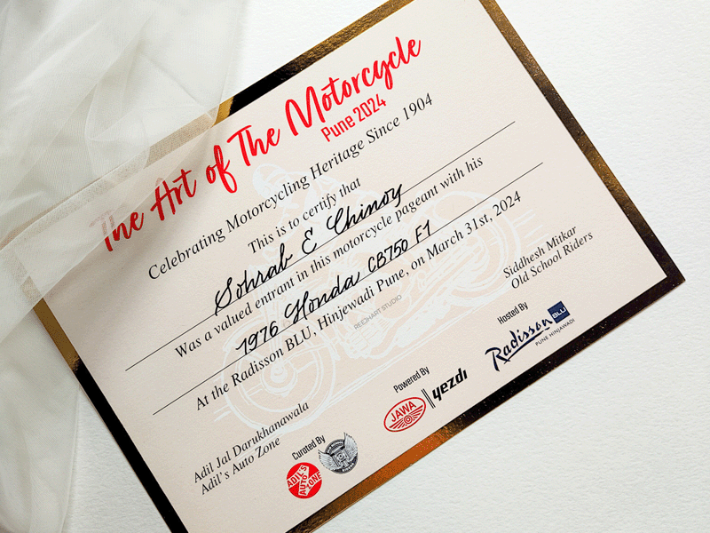 Certificate Writing The Art of the Motorcyle 2024 Pune The first edition of The Art of The Motorcycle, an exhibition and award show for vintage and classic two-wheelers, was held on March 31 at the Radisson BLU in Hinjewadi in Pune. It brought together motorcycle enthusiasts from Pune, Mumbai, from the interiors of Maharashtra and …