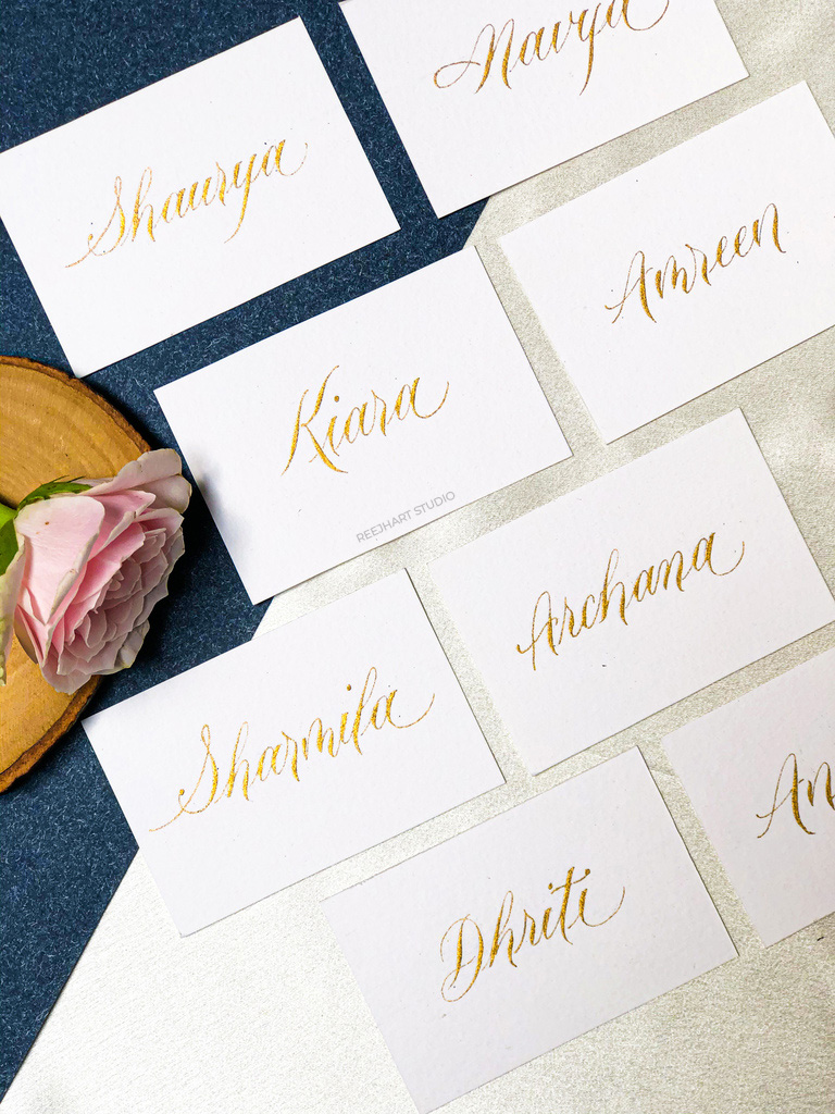Place Cards Introducing our exquisite Gold Ink Name Tags, a touch of modern calligraphy style that adds a touch of elegance and sophistication to any occasion. These versatile name tags, crafted with precision and adorned with gleaming gold ink, are perfect for a myriad of celebrations, from weddings to any special occasions. The modern calligraphy …