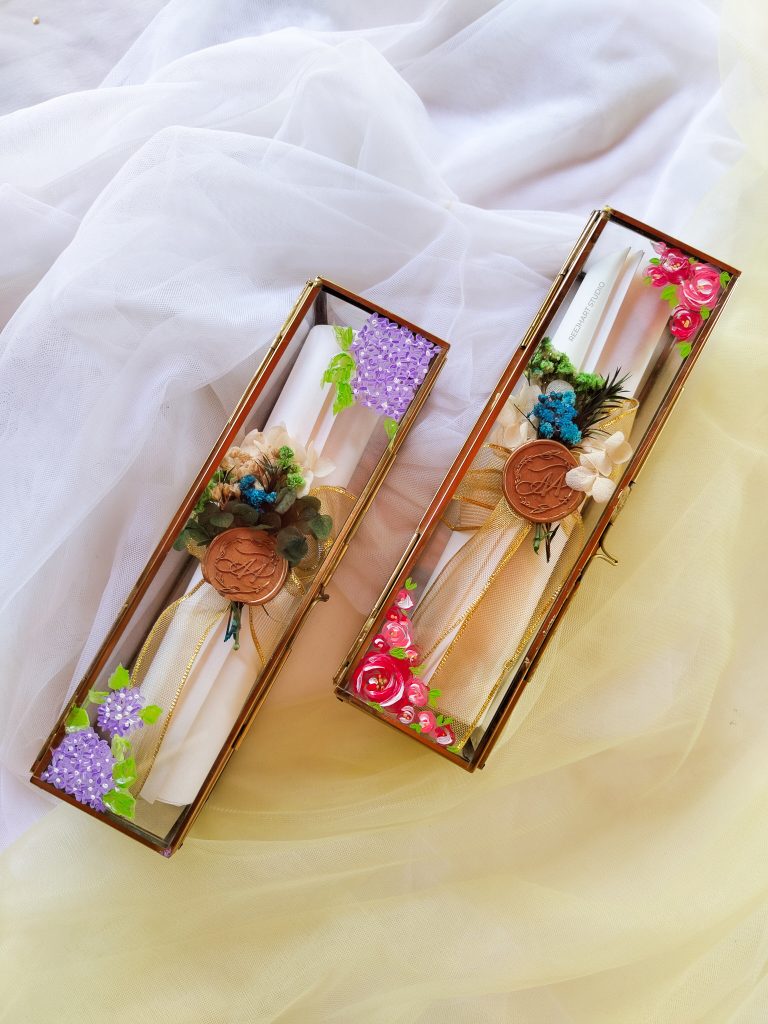 Handwritten letter scroll Introducing our bespoke Handwritten Letter Scroll, a timeless expression of love and devotion curated for a couple’s anniversary celebration. Each letter is meticulously crafted in calligraphy, a testament to the enduring art of handwritten messages. The scroll is then elegantly placed within a glass box, sealed with the couple’s wedding monogram in …