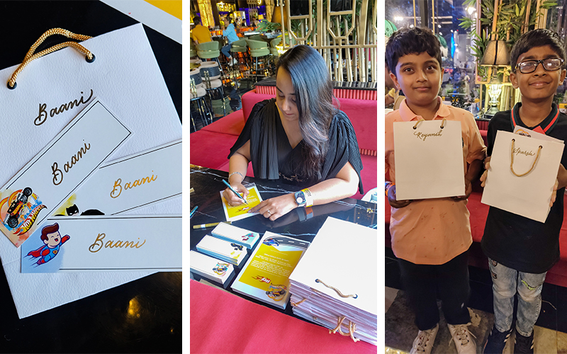 It was a day filled with excitement, adventure, and personalized surprises that will leave every young superhero feeling like they've just saved the day. At the heart of the celebration are our hand-lettered bookmarks, specially crafted in the theme of superheroes. Each bookmark is a work of art, meticulously designed to capture the essence of bravery, strength, and heroism. But what makes them truly special is the personal touch – every child's name is lovingly written on their bookmark, making them feel like true superheroes in their own right. As the kids arrive at the party, their eyes light up with excitement at the sight of these personalized treasures. They eagerly choose their favorite superhero bookmark, watching in awe as their name is carefully hand-lettered onto the page. It's a moment of pure joy and wonder, as they clutch their new prized possession with pride. Throughout the day, the kids embark on thrilling adventures, fueled by their newfound superhero powers and the excitement of their personalized bookmarks. Whether they're battling imaginary villains, solving puzzles, or simply enjoying the festivities, each child carries a piece of the party with them – a tangible reminder of the fun and friendship shared on Ayansh's special day. As the celebration comes to an end, the kids bid farewell to Game Palacio, their hearts full of memories and their minds filled with dreams of heroism. And as they tuck into bed that night, their personalized superhero bookmarks by their side, they know that they'll always be ready to save the day – one adventure at a time.