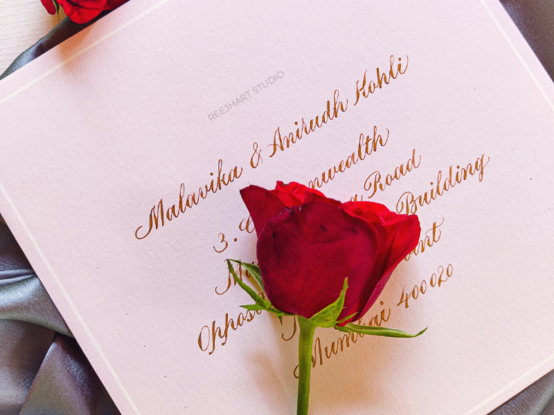 Whether you're inviting guests to a corporate gathering, an exclusive event, or a celebration hosted by the Poonawalla Group, our calligraphy on lavender envelopes is an embodiment of the exceptional standards upheld by your distinguished organization. Elevate the art of invitation and make a lasting impression with our lavishly addressed envelopes, where calligraphy meets exquisite lavender hues, setting the stage for a truly memorable experience with the Poonawalla Group.